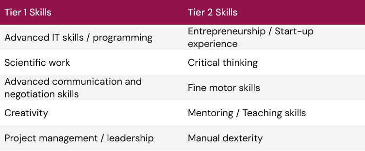 New job opportunities will arise from the ashes! The labor market is currently undergoing a massive transformation, which can cause a temporarily precarious situation for job entrants and for people in jobs that can be heavily substituted by AI. To master this transition, companies are pursuing differentiated strategies. While hiring new talent is currently focused primarily in highly qualified areas, the focus is on internal training for using AI. Since the transition from manual tasks to complex IT skills is extremely time-consuming, according to the McKinsey study (2025), almost half of companies rely on their own in-house training and mentoring to make their workforce fit for the new reality by 2030. Below, Fit4Prax provides an overview of selected skills that already play an important role in many job profiles today and in the future.