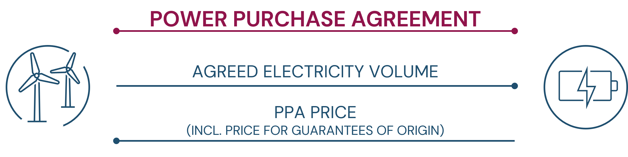 PPAs are procurement contracts that regulate the physical or virtual delivery of renewable energy. They are usually structured as long-term contracts. In addition to the supply of electricity, these contracts also include the delivery of energy attribute certificates (EACs, in Germany: guarantees of origin), which prove the origin of every MWh contracted under the PPA from a specific plant. The price of the certificates is usually included in the total price of the PPA.
